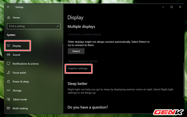 Bước 2: Nhấp vào tùy chọn Display ở danh sách bên trái, sau đó tìm và nhấn vào "Graphic settings".