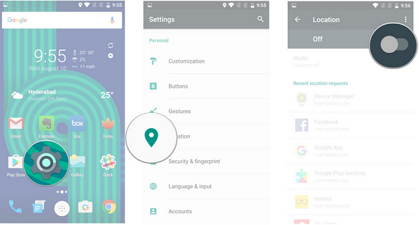 Nếu không tìm thấy thiết bị của mình hoặc có thông báo rằng thiết bị không có sẵn, thì có khả năng là dịch vụ định vị không hoạt động. ADM luôn dựa vào GPS để theo dõi smartphone của bạn, vì vậy phải kích hoạt dịch vụ này lên bằng cách: mở Settings, nhấp vào Location và chuyển sang bật dịch vụ định vị