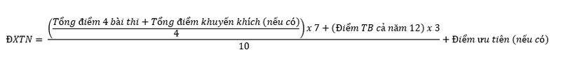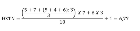 Hoặc, thí sinh B lựa chọn bài thi tổ hợp Khoa học Tự nhiên và điểm của các môn bắt buộc như sau: Văn 5, Toán 7, Lý 5, Hóa 4, Sinh 6. Thí sinh này có 1 điểm ưu tiên và không có điểm khuyến khích. Điểm trung bình cả năm lớp 12 là 6. Cách tính điểm của thí sinh B như sau: