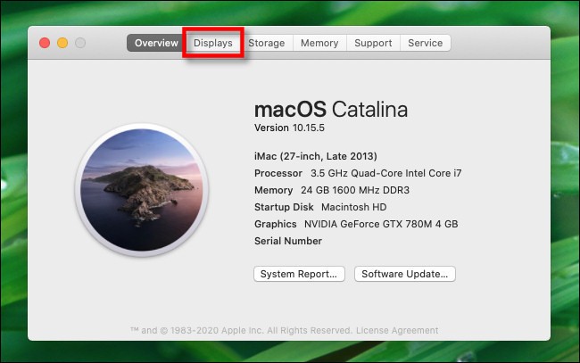 Lưu ý: About This Mac luôn thể hiện độ phân giải cao nhất của màn hình hiển thị bất kể các thiết lập trong System Preferences.