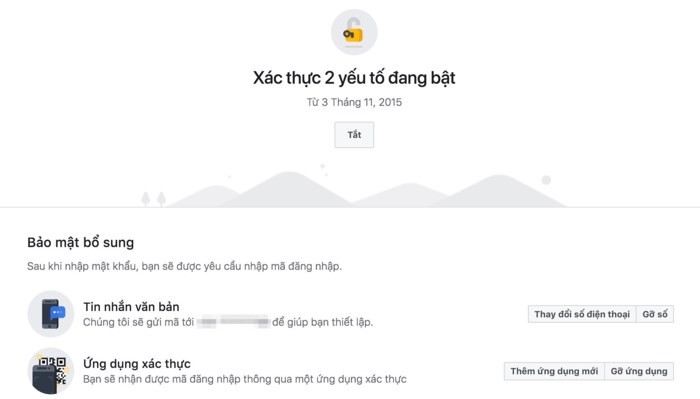 Để kích hoạt tính năng xác thực hai lớp cho Facebook, bạn hãy truy cập vào địa chỉ https://www.facebook.com/settings?tab=security, chọn Use two-factor authentication (sử dụng xác thực 2 yếu tố) > Edit (chỉnh sửa) > Get Started (bắt đầu) và làm theo các bước hướng dẫn. Tại đây, người dùng có thể chọn nhận mã bảo mật qua điện thoại hoặc thông qua các ứng dụng xác thực của bên thứ ba như Google Authenticator hoặc Duo Mobile…
