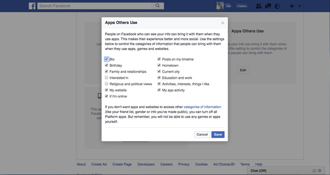 14. Trong phần "Apps Others Use" này sẽ hiện ra những thông tin mà người dùng cho phép bạn bè của mình nhìn thấy, những thông tin này cũng có thể bị các ứng dụng bạn bè chúng ta sử dụng khai thác. Bước cuối cùng người dùng chỉ cần bỏ tick ở những ô vuông đó nếu không muốn chia sẻ thông tin của mình.