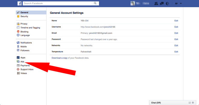 3. Chọn mục Ads - Quảng cáo