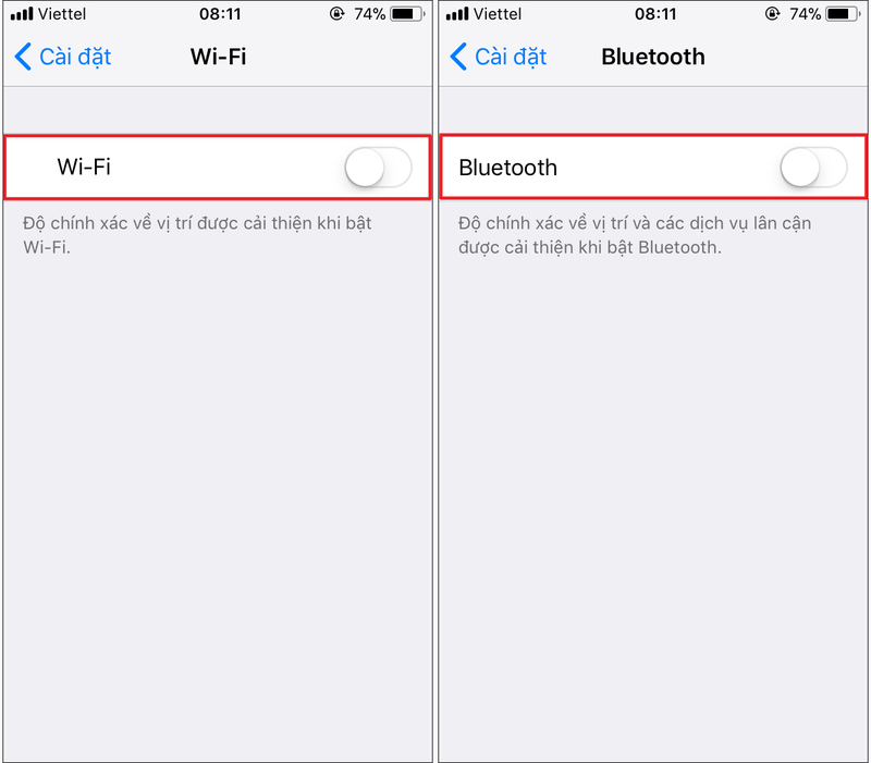 Các nút Bluetooth và WiFi trên Control Center (Trung tâm kiểm soát) không tắt hẳn Bluetooth và WiFi. Thay vào đó, nó chỉ ngắt kết nối của điện thoại, trong khi vẫn quét để tìm kiếm tín hiệu Bluetooth và WiFi.