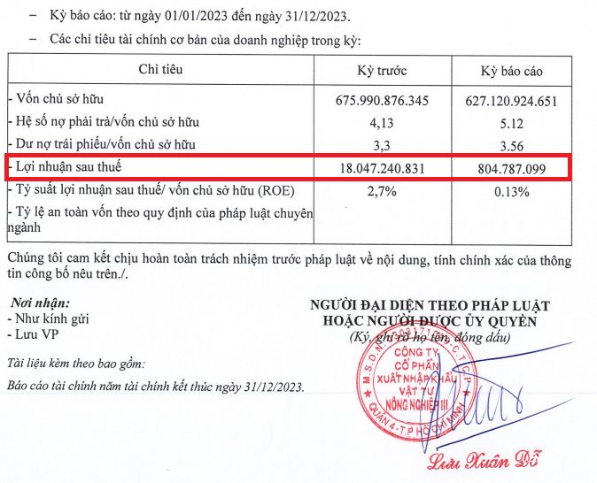 Công ty CP Xuất nhập khẩu Vật tư Nông nghiệp III (Cajimex) vừa công bố thông tin định kỳ về tình hình tài chính năm 2023 gửi Sở Giao dịch Chứng khoán Hà Nội (HNX).