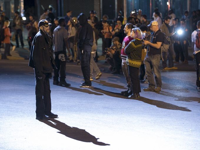 Cựu chiến binh Việt Nam Robert Valentine rời khỏi ngã tư, nơi cảnh sát sử dụng lựu đạn khói và hơi cay để giải tán đám đông