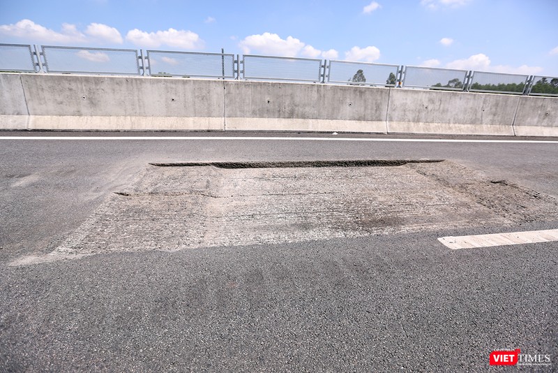 Cận cảnh một miếng vá lớn trên cao tốc Đà Nẵng-Quảng Ngãi