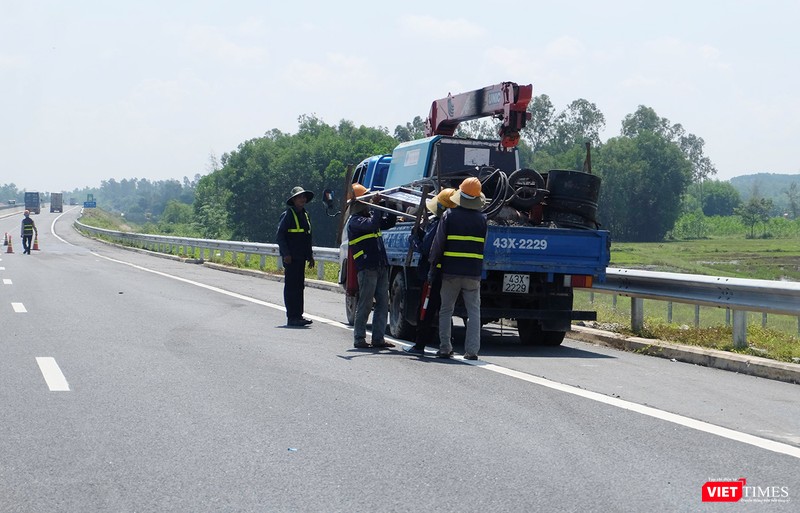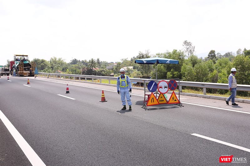 Trên tuyến cao tốc đoạn từ Đà Nẵng đi Quảng Nam và ngược lại, các chốt điều tiết giao thông phục vụ sửa chữa được dựng lên