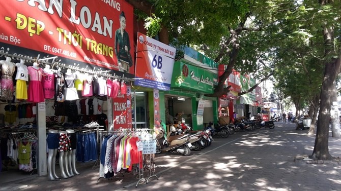 Hơn chục cửa hàng án ngữ tại mặt số 4-6 phố Chùa Bộc, từ cửa hàng thời trang cho đến sửa xe máy, cửa hàng ăn uống, quán bia...