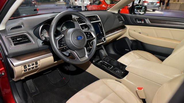 Bước vào bên trong Subaru Legacy 2018, người lái sẽ thấy những chất liệu nội thất cao cấp hơn, cụm điều khiển trung tâm tái thiết kế và vô lăng thể thao hơn. Bảng táp-lô, ghế và mặt cửa trên bản Premium của Subaru Legacy 2018 được khâu chỉ tạo cảm giác sang trọng. Thêm vào đó là bộ phụ kiện màu đen bóng và những nút điều khiển màu bạc.