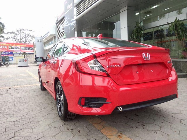 Chiếc Honda Civic 2016 trong ảnh được chụp tại một đại lý ở khu vực Hà Nội. Xe được sơn ngoại thất màu đỏ rực bắt mắt và nổi bật.