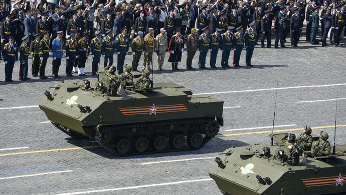 Xe BBCG đổ bộ đường không tiên tiến BMD 4M và Rakushka tiến vào lễ đài. Sau đó là các xe thiết giáp APC mới nhất, Kurganets của Bộ đội đổ bộ đường không được trình diễn lần đầu tiên.