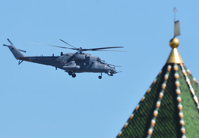 Máy bay ném bom chiến lược Tu-95, tiếp theo là Có đến Mi-8 máy bay trực thăng vận tải, máy bay trực thăng huấn luyện Ansat-U, máy bay trực thăng tấn công Mi-35M, K-52 Alligator máy bay trực thăng, Mi-28N Night Hunter với lực lượng phi công Berkut nhào lộn biểu diễn.