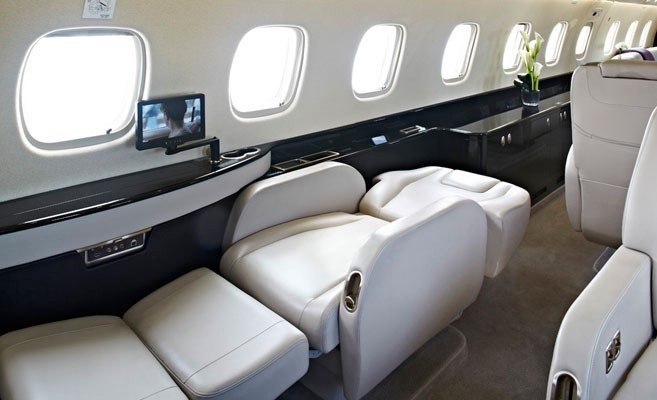 Chiếc Legacy 600 bầu Đức mới đổi có 13 chỗ ngồi cao cấp, giống dòng máy bay tư nhân mà tỷ phú Bill Gates thường sử dụng.