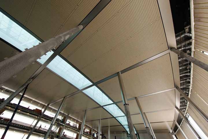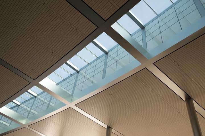 Ảnh trên là một trong số 59 đèn trời trên nóc trần cho phép ánh sáng bên ngoài đi vào tạo không khí mở và hiệu ứng cây xanh dễ chịu.