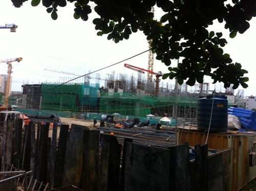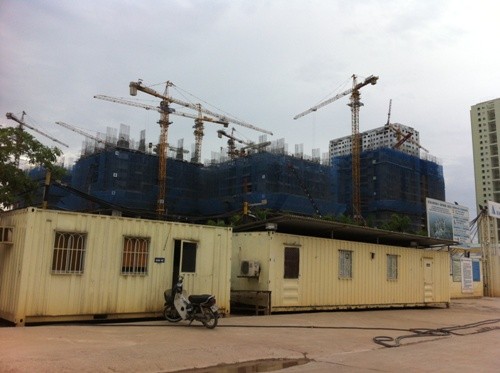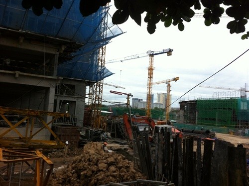Trong khi đó một số tòa khác đã hoàn thiện xong móng và đang bắt đầu xây dựng phần thân