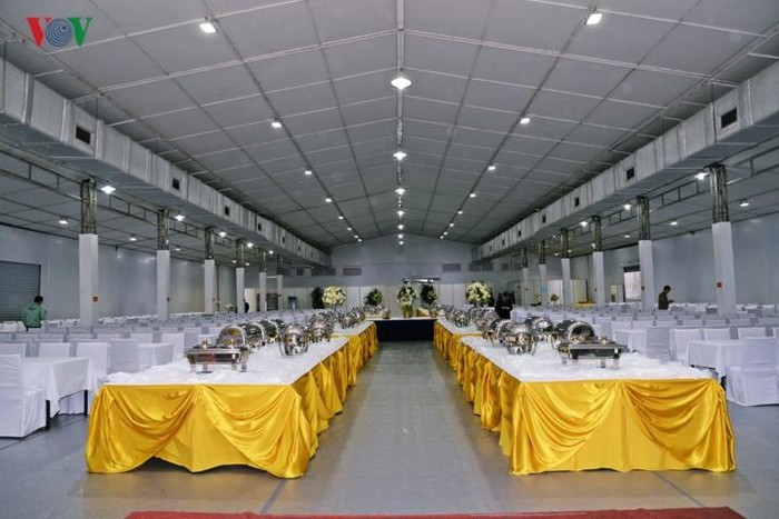 Khu nhà ăn cho phóng viên cùng các quầy giải khát tại nhiều vị trí của Trung tâm báo chí sẵn sàng đáp ứng nhu cầu ăn, uống của phóng viên. (Ảnh: VOV)