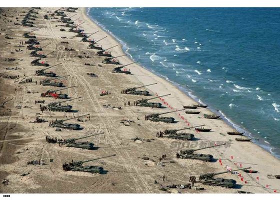 Sau đó là cuộc diễn tập phòng thủ chống đổ bộ đường biển. Nhà lãnh đạo tối cao Bắc Triều Tiên đánh giá chất lượng chiến đấu của lực lượng pháo binh. Các khẩu đội pháo hoạt động nhịp nhàng, thuần thục và pháo kích chính xác. Ông hài lòng nói: những tổ hợp pháo binh với những pháo thủ được huấn luyện kỹ càng, thuần thục và có tinh thần chiến đấu cao, sẵn sàng tiêu diệt kẻ thù. Với lực lượng pháo binh dũng mãnh này, không có lực lượng nào có thể đổ bộ được lên bờ biển Triều Tiên.