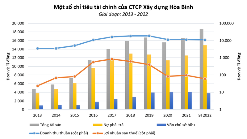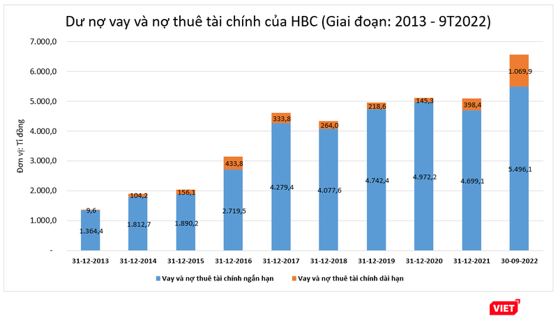 So với thời điểm cuối năm 2013, tính đến cuối quý 3/2022, dư nợ vay và cho thuê tài chính của HBC đã tăng gấp 4,7 lần.