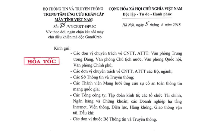 Chiều ngày 05/04/2018, Trung tâm Ứng cứu khẩn cấp máy tính Việt Nam (VNCERT) vừa phát hiện ra chiến dịch phát tán mã độc tống tiền GandCrab đang tấn công nhiều nước trên thế giới, trong đó có Việt Nam.