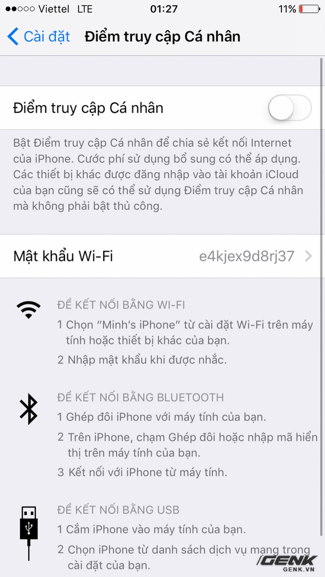 Khả năng phát Wi-Fi từ mạng di động cũng được kích hoạt