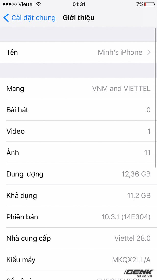 Chiếc máy được chúng tôi lựa chọn để thử nghiệm là iPhone 6s Lock Mỹ, đến từ nhà mạng T-mobile và chạy hệ điều hành iOS 10.3.1 mới nhất từ Apple. Về SIM, SIM ghép được sử dụng là VF SIM, còn SIM chính là SIM 4G từ Viettel.
