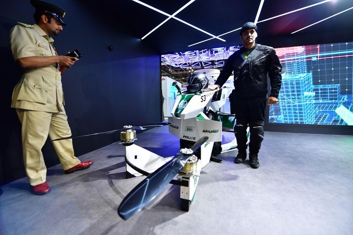 Tại sự kiện Gitex Technology Week, giới cảnh sát Dubai cũng giới thiệu mẫu xe bay chế tạo dành riêng cho nước này mang tên Hoversurf Scropion. Ngày 12/11, chương trình huấn luyện lực lượng cảnh sát xe bay chính thức khởi động.