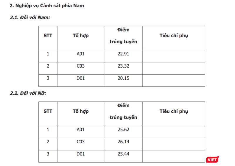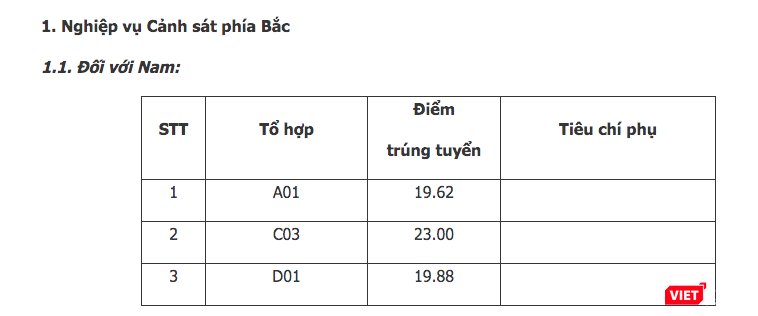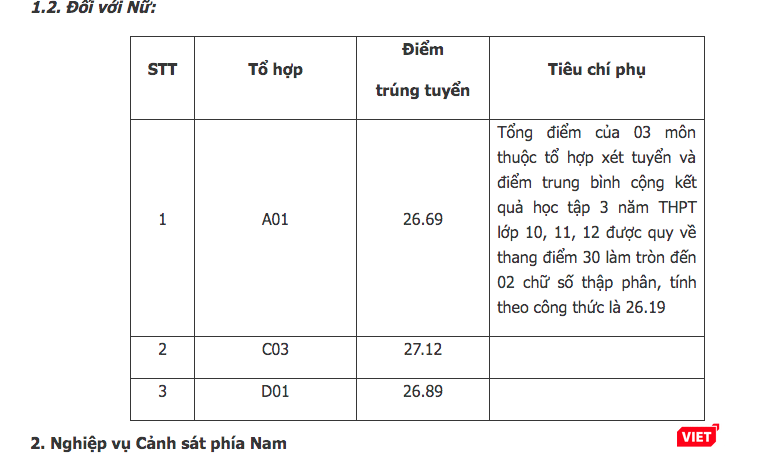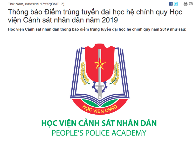 Điểm chuẩn trúng tuyển vào Học viện Cảnh sát nhân dân: