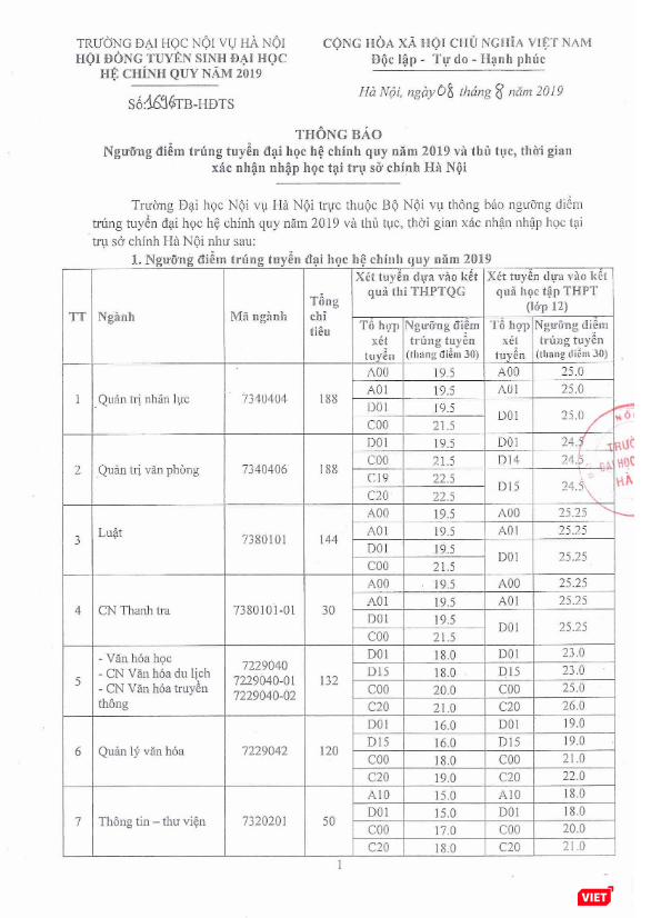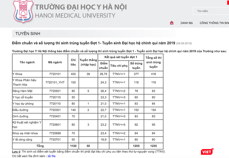 Theo đó, nhiều trường ĐH đã công bố điểm chuẩn trúng tuyển năm 2019 gồm: Trường ĐH Bách khoa Hà Nội, Trường ĐH Thương mại, Trường ĐH Y Hà Nội, Học viện Cảnh sát nhân dân...