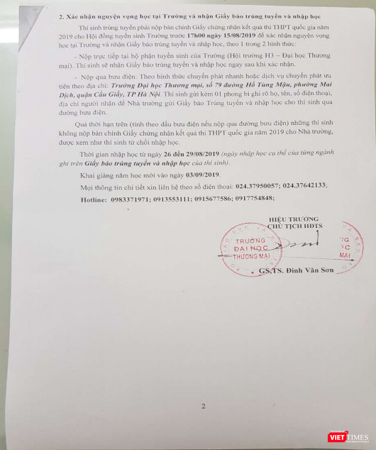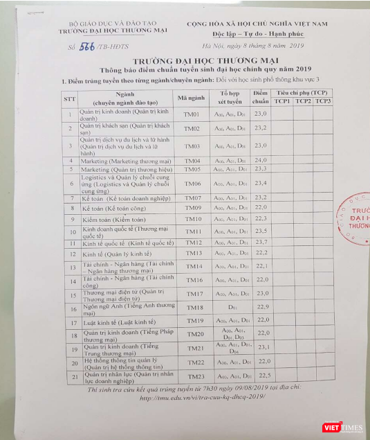 Điểm chuẩn trúng tuyển vào ĐH Thương mại: