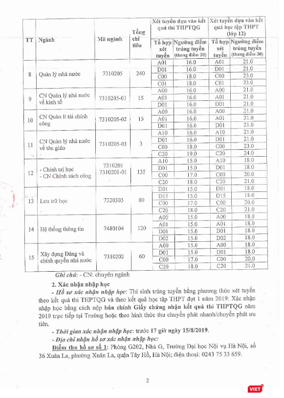 Điểm chuẩn vào Trường ĐH Nội vụ Hà Nội