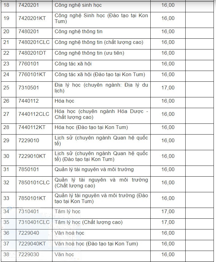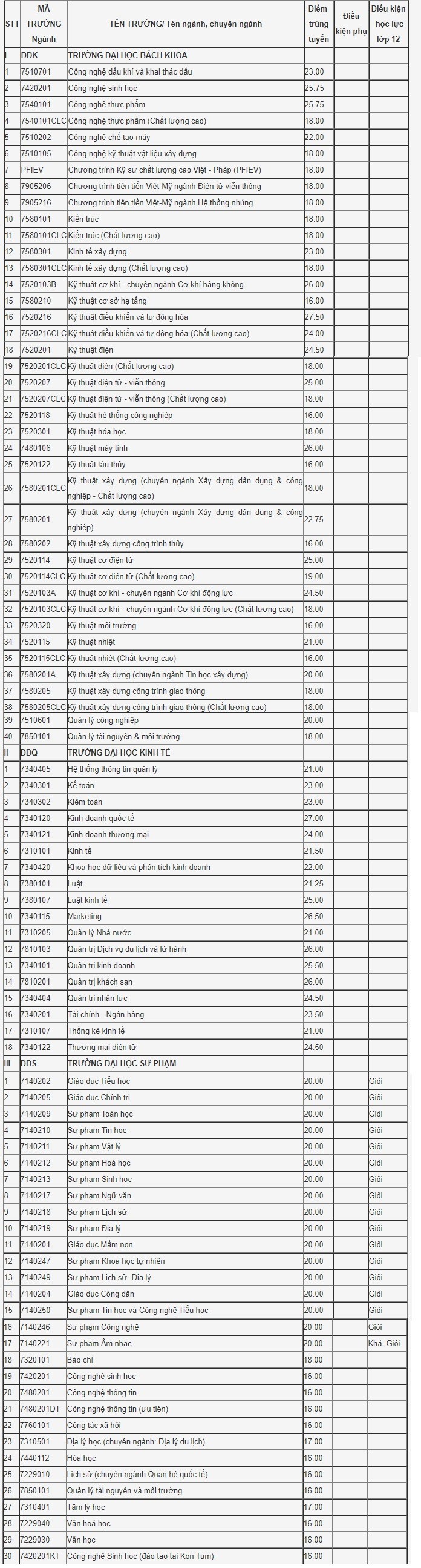 Điểm chuẩn của các trường thành viên ĐH Đà Nẵng