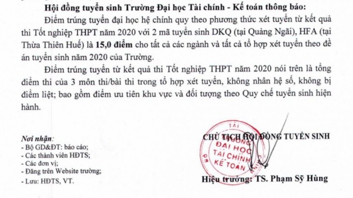 >> Click vào đây để thấy các cập nhật mới nhất về Điểm chuẩn trường Đại học Tài chính Kế toán năm 2020