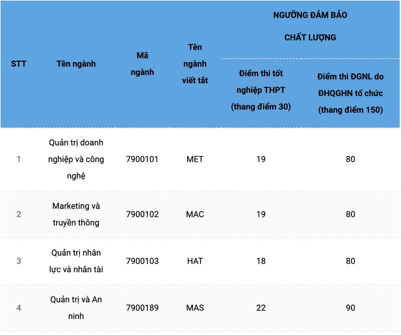 Mức điểm sàn do Khoa Quản trị và Kinh doanh công bố.