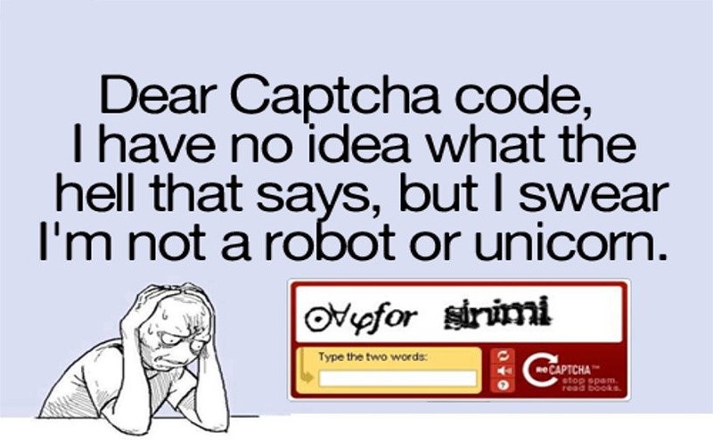 "Kính gửi CAPTCHA, tôi không thể nhìn nổi cái chữ khỉ gì trong ô đó, nhưng tôi có thể thề rằng tôi không phải là robot."