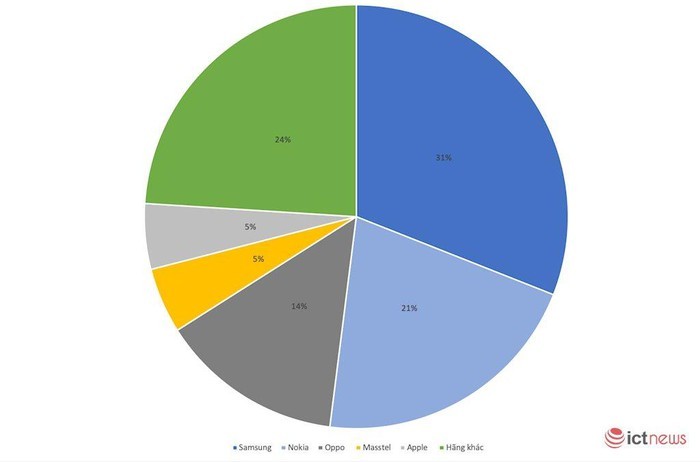 Cùng câu chuyện như Nokia là Masstel, một thương hiệu Việt. Theo GfK, quý 1/2019 Masstel có 5% thị phần điện thoại nói chung, đứng thứ 4 thị trường. Hãng chuyên bán điện thoại giá vài trăm ngàn này có thị phần đứng trên cả Apple và thường xuyên có 5-6% thị phần liên tục nhiều quý gần đây.