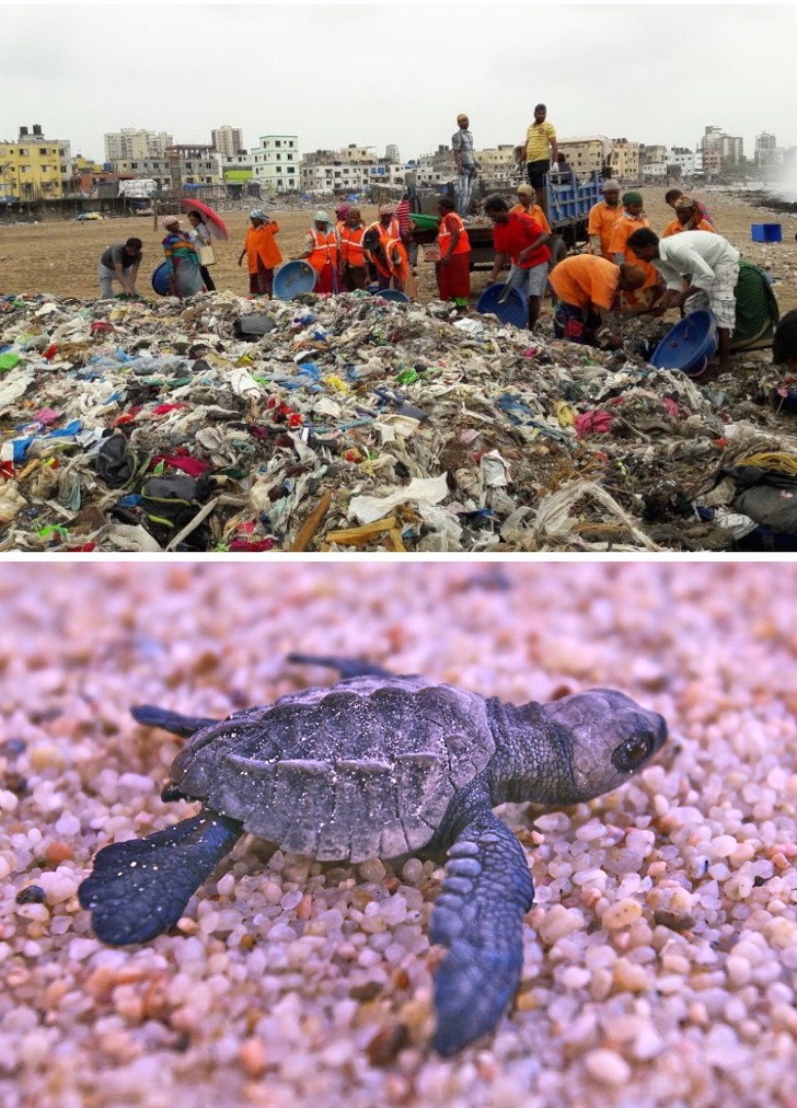 Một bãi biển tuyệt đẹp ở Mumbai từng bị bao phủ bởi rác thải. Trước đó, bãi biển là nơi sinh của loài rùa ô liu nhưng do môi trường bị ô nhiễm, chúng phải di chuyển đến các vùng khác. Một người đàn ông tên Afroz Shah đã đến bãi biển này và bắt đầu dọn dẹp rác thải và có rất nhiều tình nguyện viên ủng hộ hành động của anh.