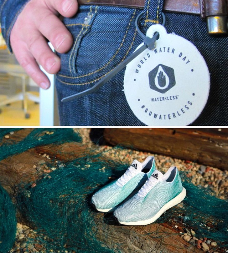 Levi's là thương hiệu đầu tiên phát hành denim sinh thái và quần jean với dấu hiệu "không nước" với ý nghĩa là công ty tiết kiệm nước ở các giai đoạn sản xuất khác nhau. Adidas đã tạo ra bộ sưu tập giày thể thao thân thiện với môi trường được làm từ rác thu thập từ đại dương. Hầu hết các công ty hiện nay sử dụng túi có khả năng phân hủy sinh học trong vòng 2 năm.