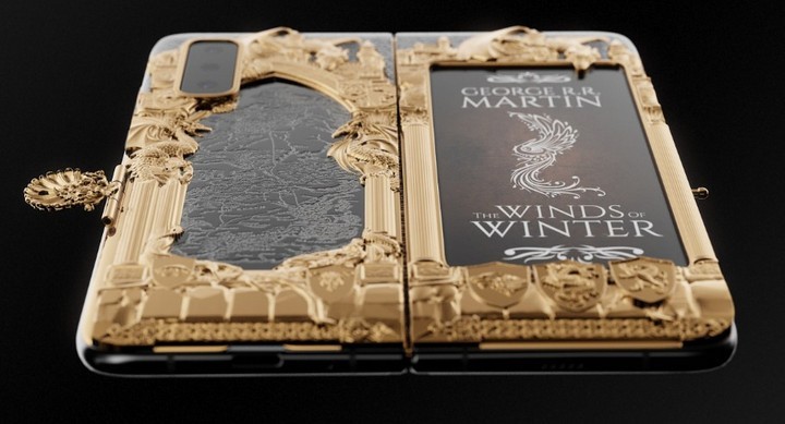 Thoạt nhìn có thể thấy, Galaxy Fold phiên bản đặc biệt của Caviar được dát vàng khá đẹp mắt. Trong đó, phần thân có nhắc đến bộ tiểu thuyết "A Song of Ice and Fire" đã được chuyển thể thành series phim ăn khách nhất trên HBO. Còn lớp vỏ của máy lấy ý tưởng từ tập truyện The Winds of Winter. Caviar cho biết, hãng sẽ phát hành 7 mẫu thiết kế độc đáo khác nhau tương ứng với 7 vương quốc thuộc lục địa Westeros trong series phim Game of Thrones. Hiện hãng đã cho đặt hàng trước.