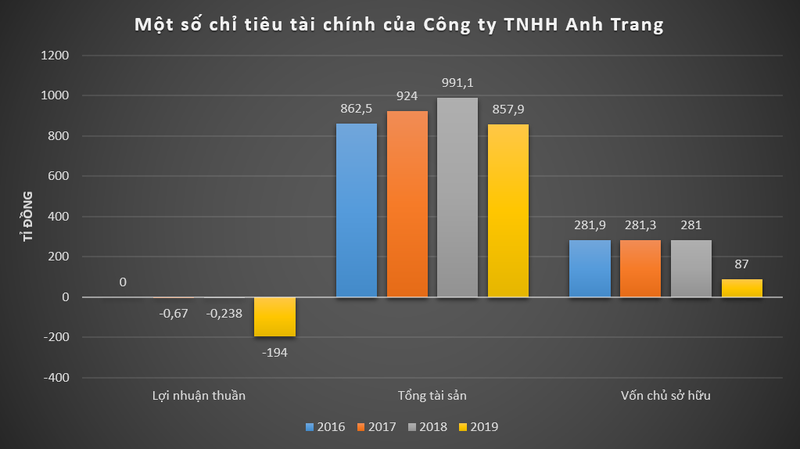 Dữ liệu của VietTimes cho thấy, trong giai đoạn 2016 - 2019, Anh Trang không phát sinh chỉ tiêu doanh thu. Đáng chú ý, năm 2019, công ty này báo lỗ thuần lên tới 194 tỉ đồng; trước đó, năm 2017 và 2018 lần lượt lỗ 670 triệu đồng và 238 triệu đồng.