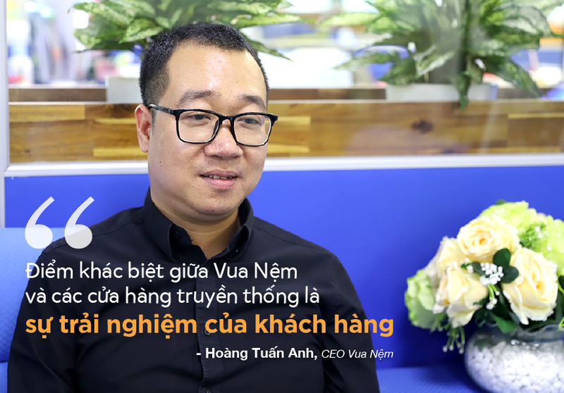 Đánh giá về thị trường, CEO Hoàng Tuấn Anh cho rằng 95% đối thủ của Vua Nệm là các cửa hàng truyền thống, kinh doanh nhỏ lẻ. Điểm khác biệt giữa 2 bên nằm ở sự trải nghiệm của khách hàng.