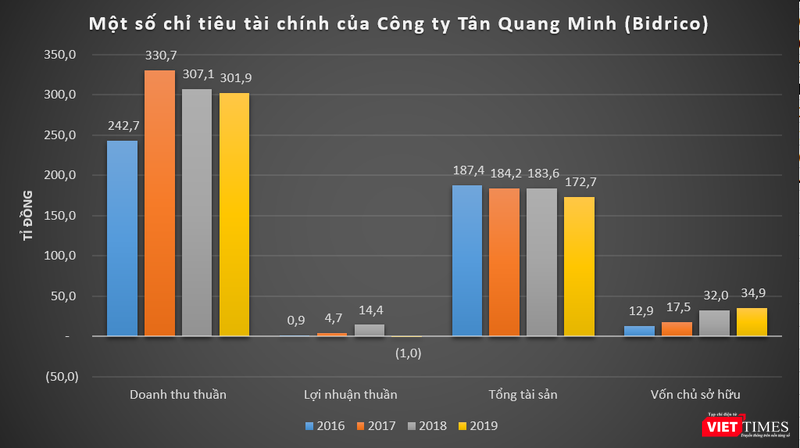 Về kết quả kinh doanh, dữ liệu của VietTimes cho thấy, vài năm gần đây, Bidrico (công ty mẹ) luôn duy trì doanh thu thuần dao động quanh mức 300 tỉ đồng. Cao nhất là năm 2017, doanh thu thuần của Bidrico đạt 330,7 tỉ đồng, lãi thuần ở mức 4,7 tỉ đồng.