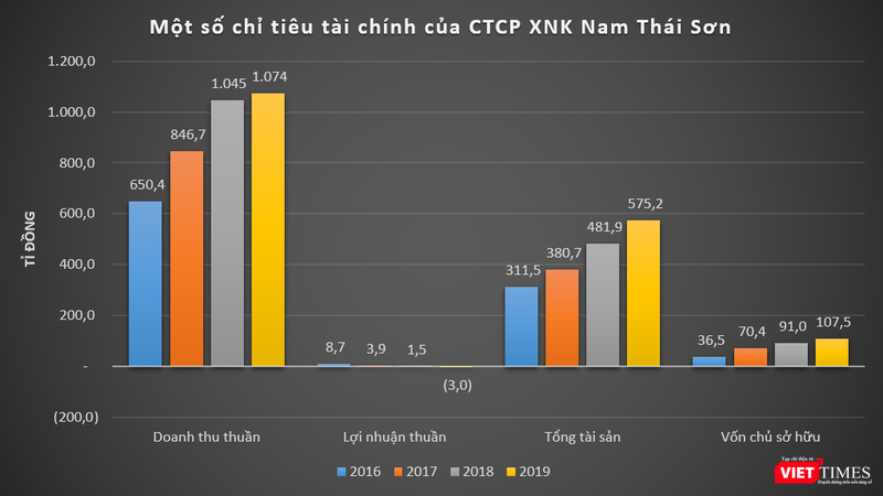 Đáng chú ý là năm 2019, Nam Thái Sơn ghi nhận doanh thu thuần đạt 1.074 tỉ đồng, tăng 2,7% so với năm trước, tuy nhiên lại báo lỗ thuần ở mức 3 tỉ đồng. Trước đó, từ 2016 - 2018, công ty này báo lãi thuần lần lượt 8,7 tỉ đồng, 3,9 tỉ đồng và 1,5 tỉ đồng.