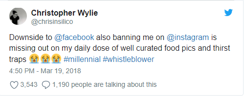 Anh Wylie nói: “Chúng tôi đã khai thác lỗ hổng của Facebook để thu thập dữ liệu hàng triệu tài khoản, và xây dựng những mô hình cho phép khai thác tất cả những điều chúng tôi đã biết về người dùng và nhắm đúng tâm lý của họ. Đó là cơ sở để công ty duy trì hoạt động.”