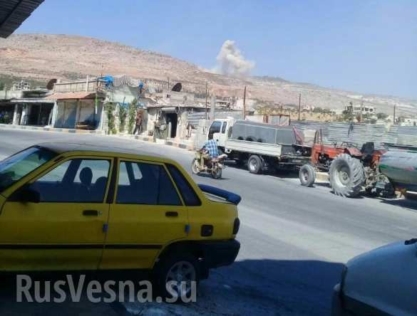Không quân Nga - Syria bắt đầu đánh phá chiến tuyến của lực lượng Hồi giáo cực đoan. Ảnh trang tin Iba'a, cơ quan truyền thông của HTS, Rusvesna đăng tải.