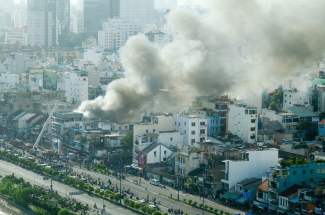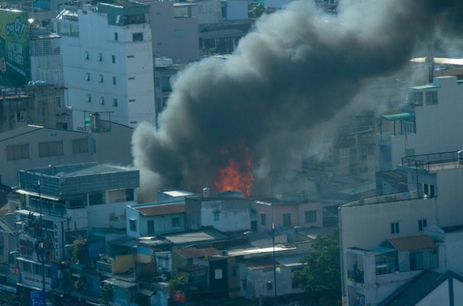 Khu vực hỏa hoạn là những căn nhà liền kề, nằm trong hẻm nhỏ nên cảnh sát tiếp cận chữa cháy gặp nhiều khó khăn. Họ tiếp cận từ nhiều hướng, xe thang liên tục phun nước cô lập đám cháy ở hai mặt đường Võ Văn Kiệt và Yersin.