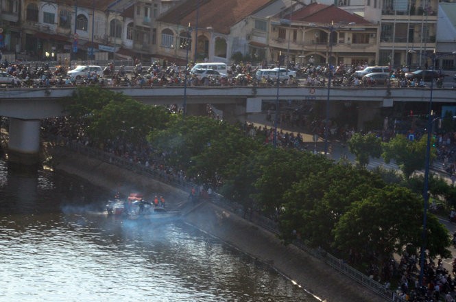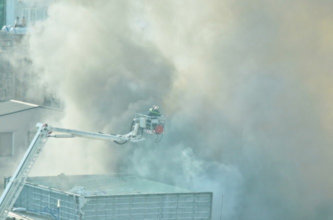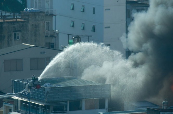 | Cảnh sát đang nỗ lực khống chế đám cháy. Ảnh:Hải Hiếu |