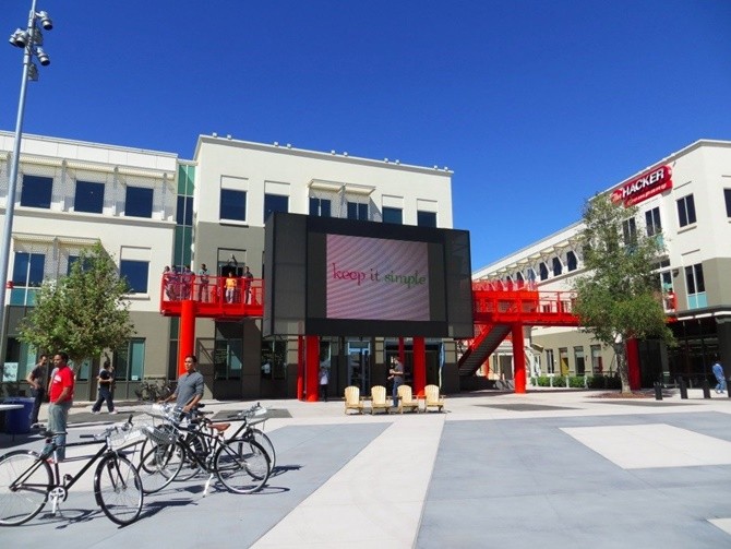 "Hacker Square" — là quảng trường trung tâm của Facebook. Chữ "hack" được viết trên các viên gạch để có thể nhìn thấy từ trên cao. Đây là nơi Facebook dùng để tổ chức các sự kiện quan trọng của công ty.