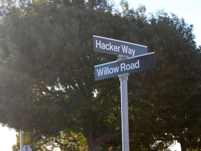 "Hacker Way" – đây chỉ là một con đường đi bộ bình thường bên trong khuôn viên của Facebook chứ không phải một chỉ dẫn cho dân lập trình.