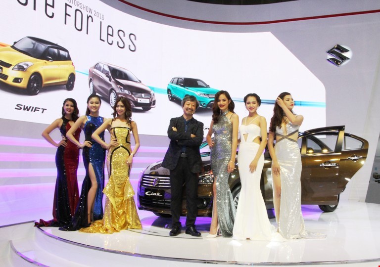 Suzuki nổi bật với chiếc xe sedan mới Ciaz. Nằm bên cạnh là những mẫu có thiết kế và phối màu phá cách như: chiếc SUV Vitara, chiếc hatchback Swift và mẫu xe gia đình 7 chỗ Ertiga rộng rãi.